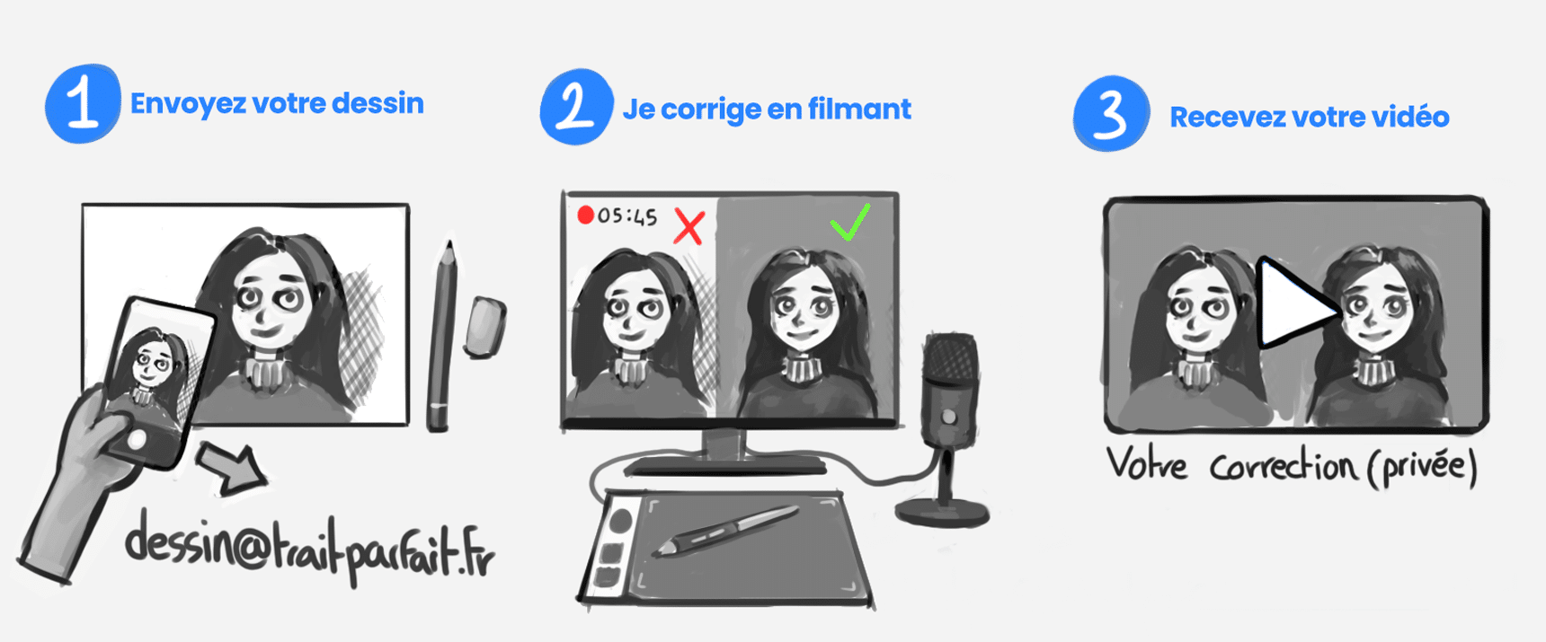 Je vous invite à idéalement scanner votre dessin ou réaliser une belle photographie de votre dessin et de me l’envoyer à cette adresse email : dessin@traitparfait.fr