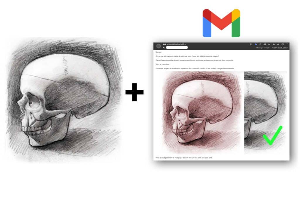 Correction complète de votre dessin par email. Vous avez simplement à prendre en photo / scanner votre dessin et me l’envoyer. Je vous donnerai des conseils en plus de vous montrer comment corriger votre dessin !